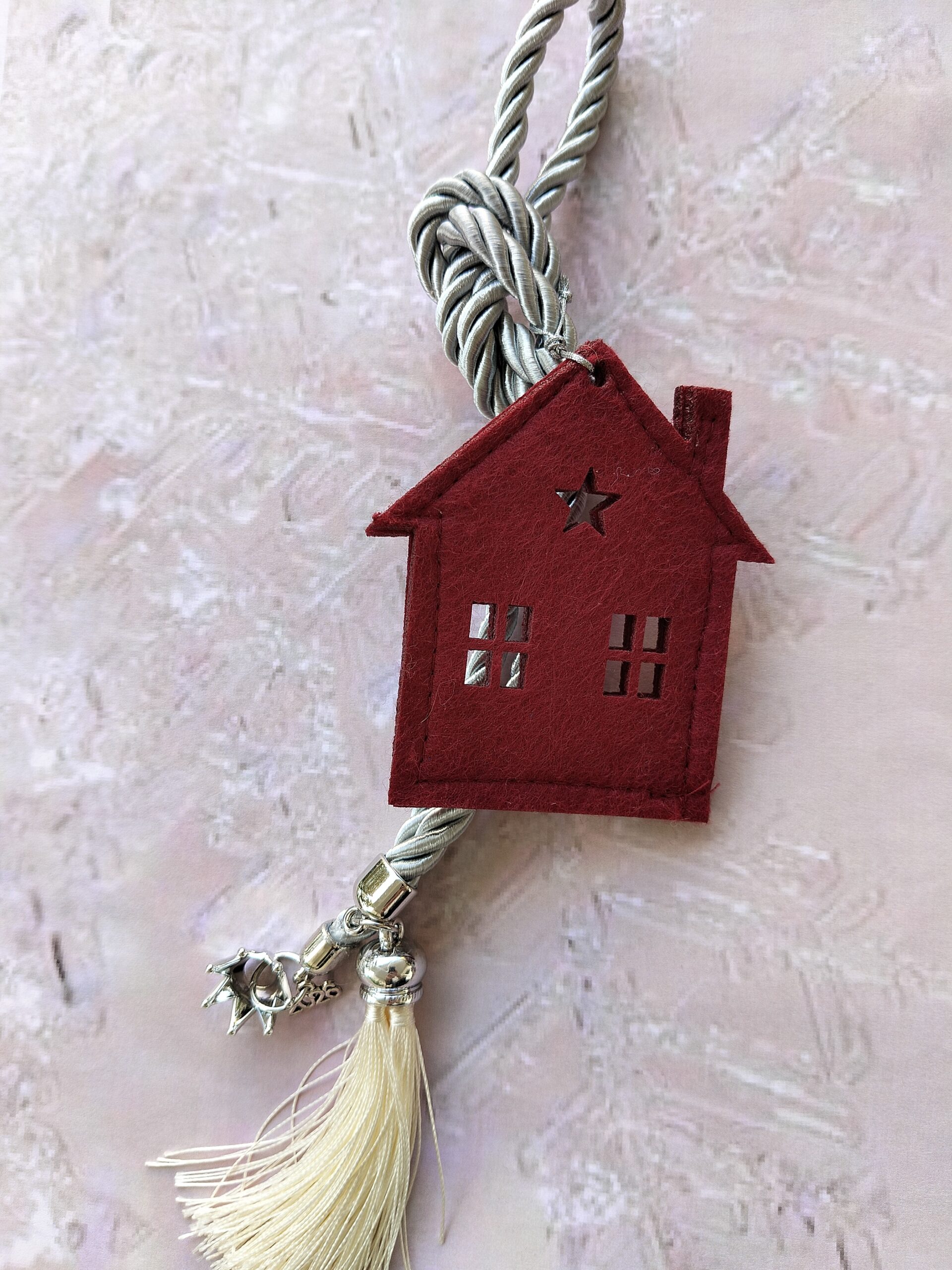 / Γούρι με σπίτι κρεμαστό σε μπορντό τσόχα