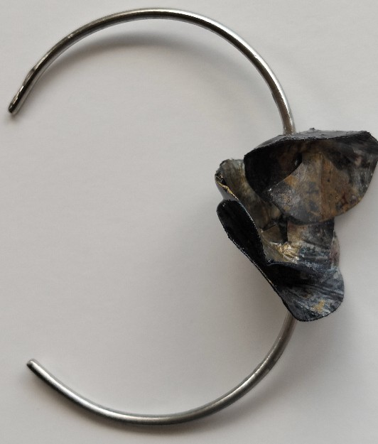 Μαύρες μικρές ροζέτες από χαρτί με μαρμαρογραφία και υγρό γυαλί, ατσάλινη βάση σε ασημί χρώμα.
