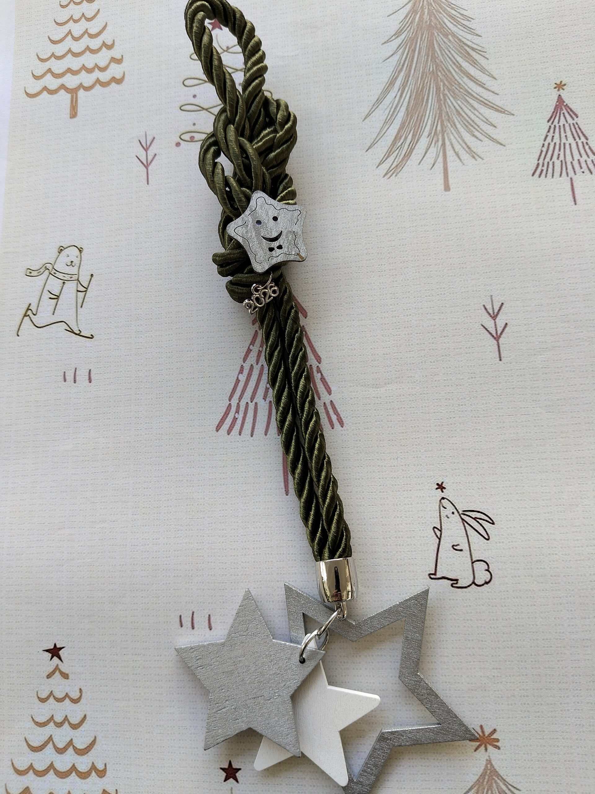 / Ξύλινα αστέρια σε ασημί με πράσινο κορδόνι στα