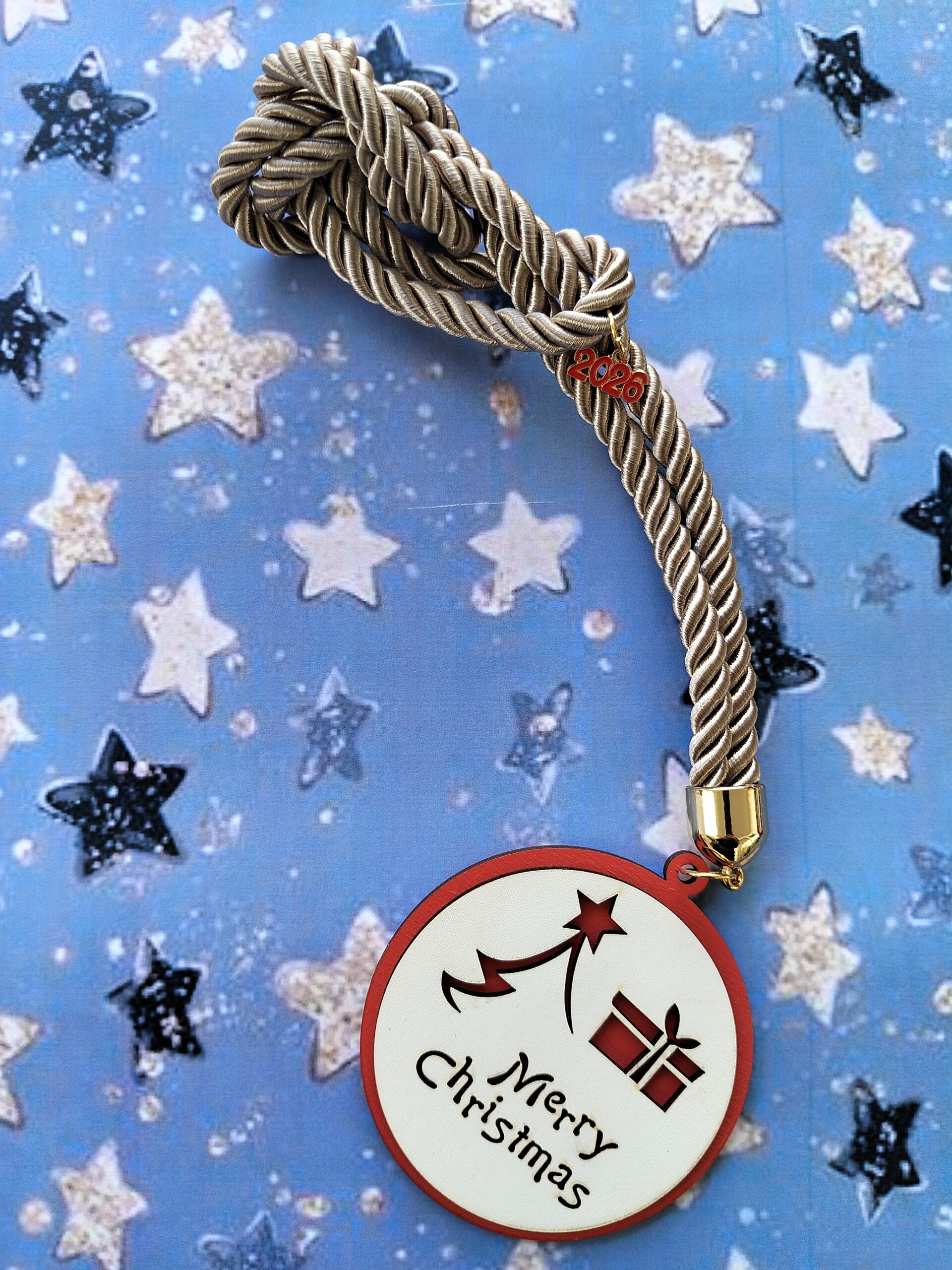 Ξύλινο γούρι Merry Christmas με χρυσό κορδόνι