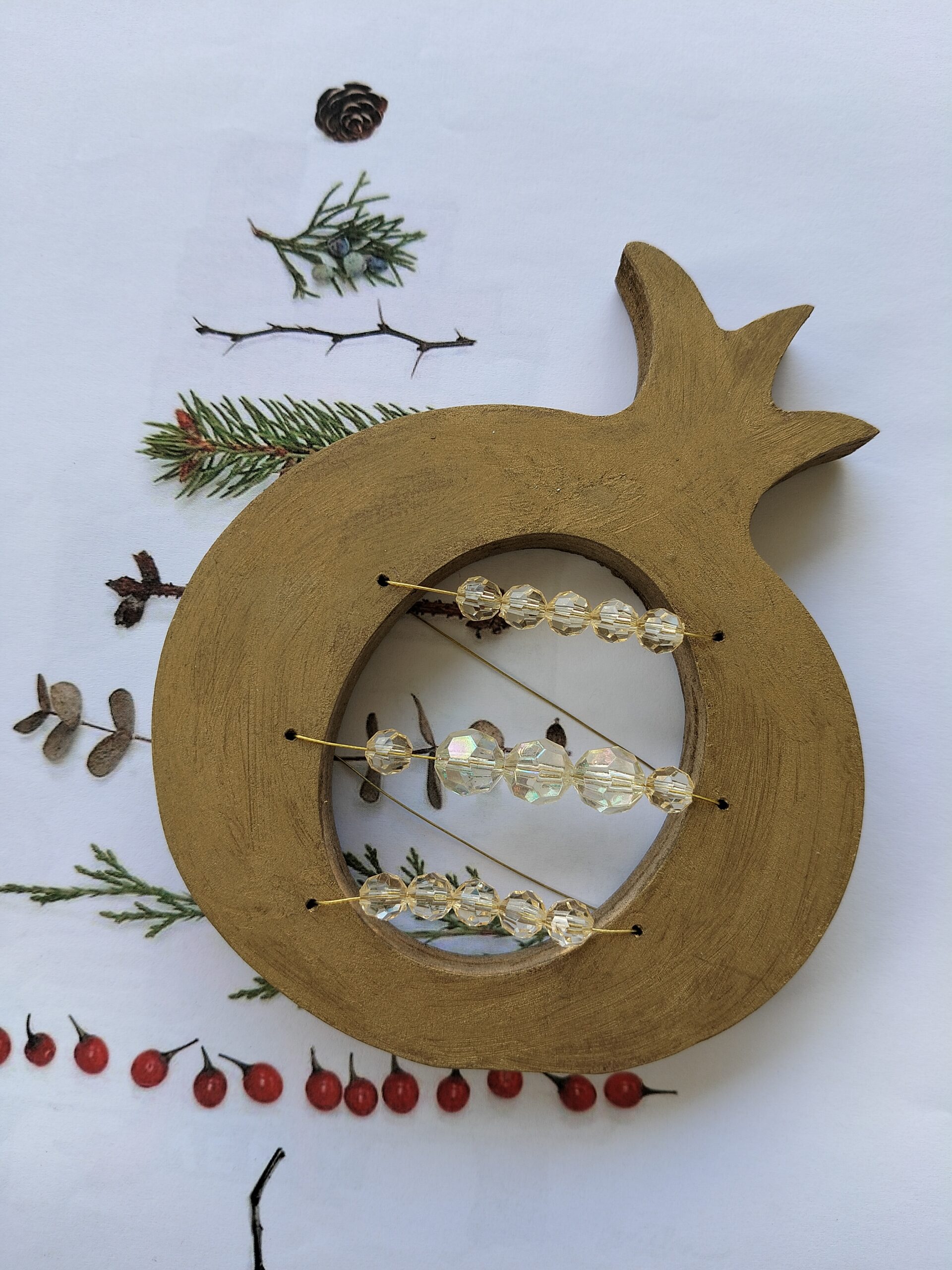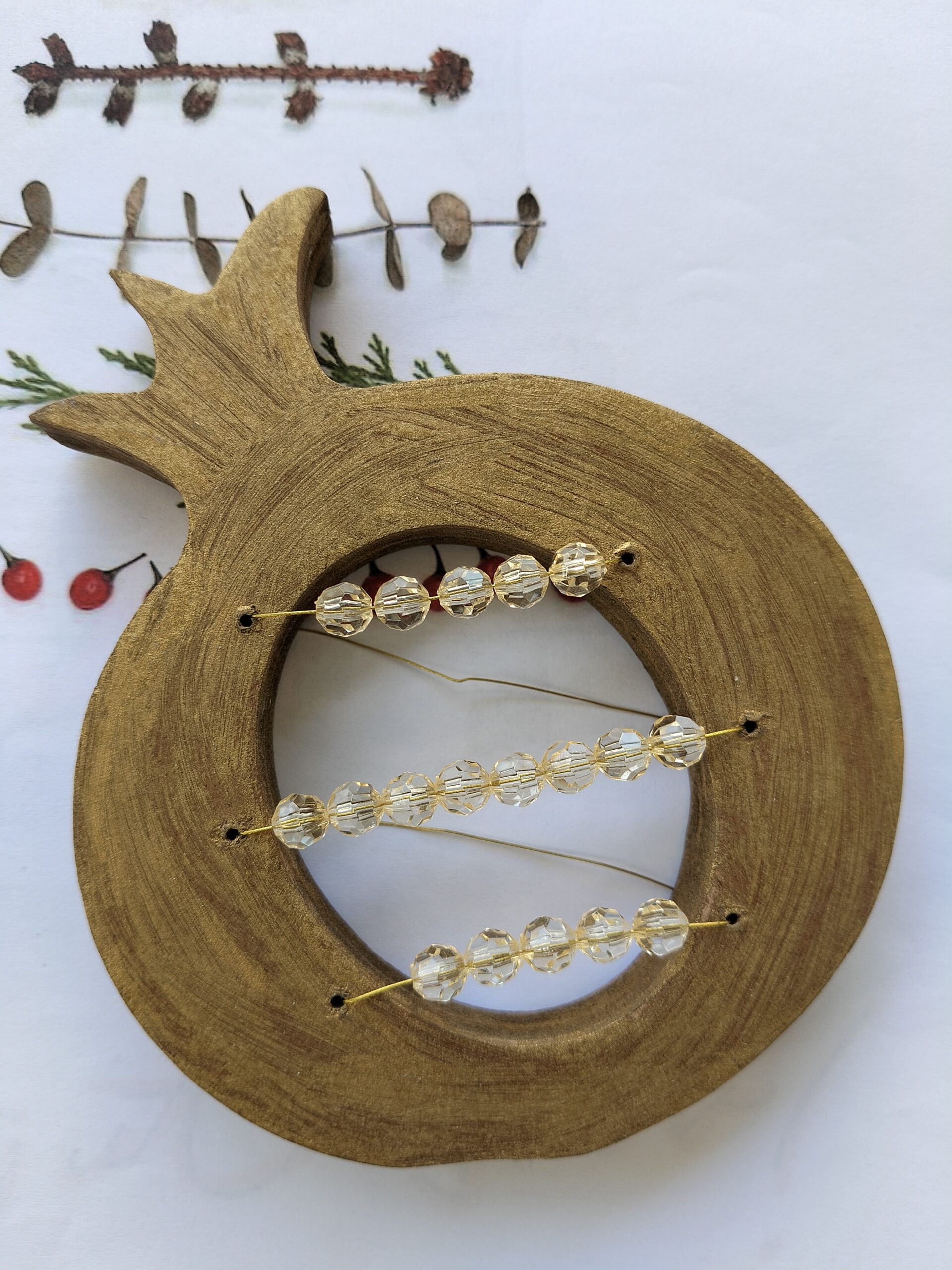 Ρόδι ξύλινο μεγάλο επιτραπέζιο χρυσό με χρυσές χάντρες