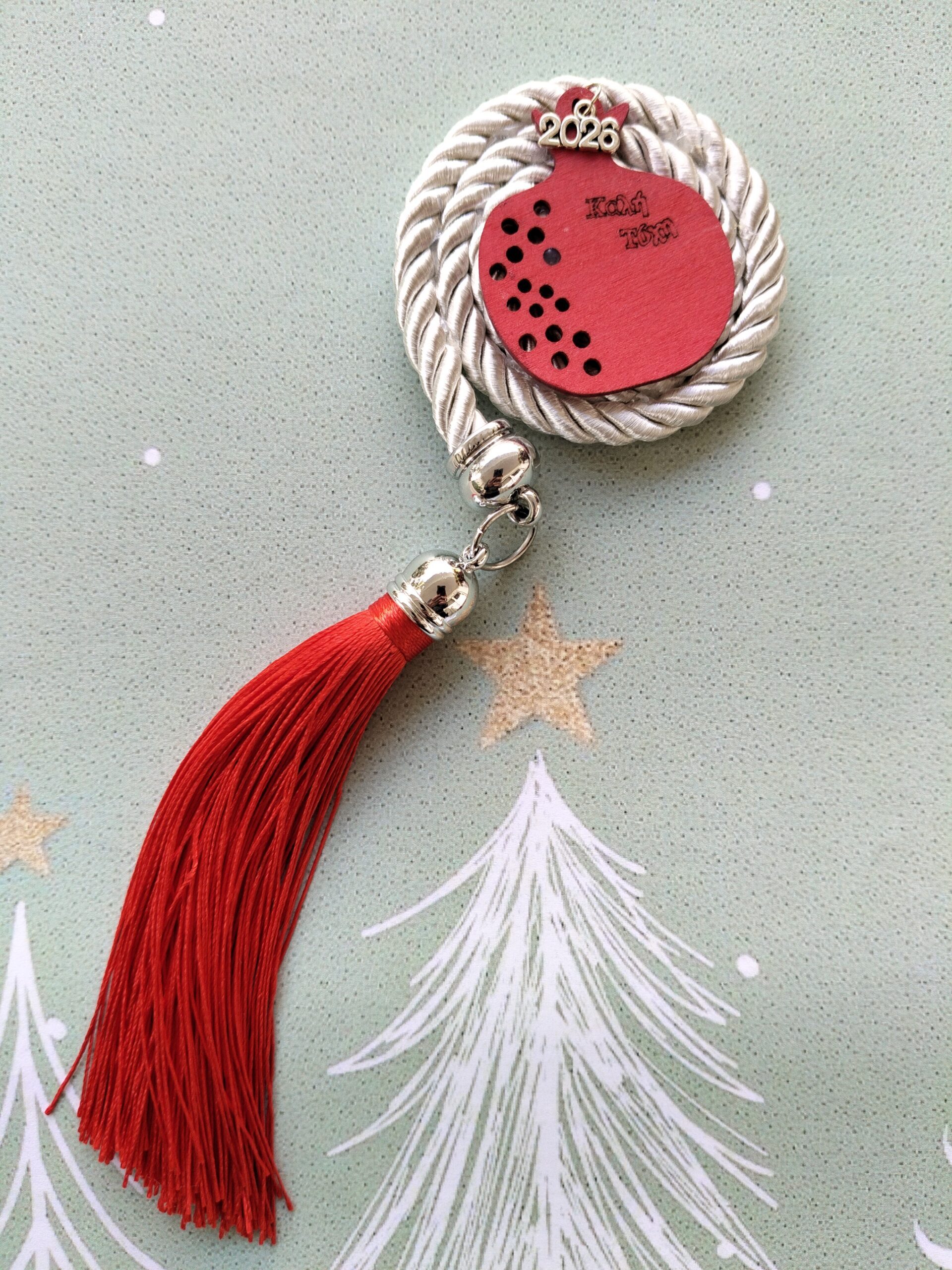 / Ρόδι ξύλινο με λευκό κορδόνι επιτραπέζιο