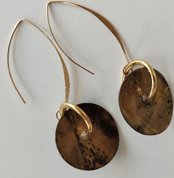 Χαρτί με μαρμαρογραφία και υγρό γυαλί. Ροζέτες με καφέ χαρτί, χρυσές λεπτομέρειες και υγρό γυαλί και βάσεις ατσάλινες σε χρυσό χρώμα.€ 20,00